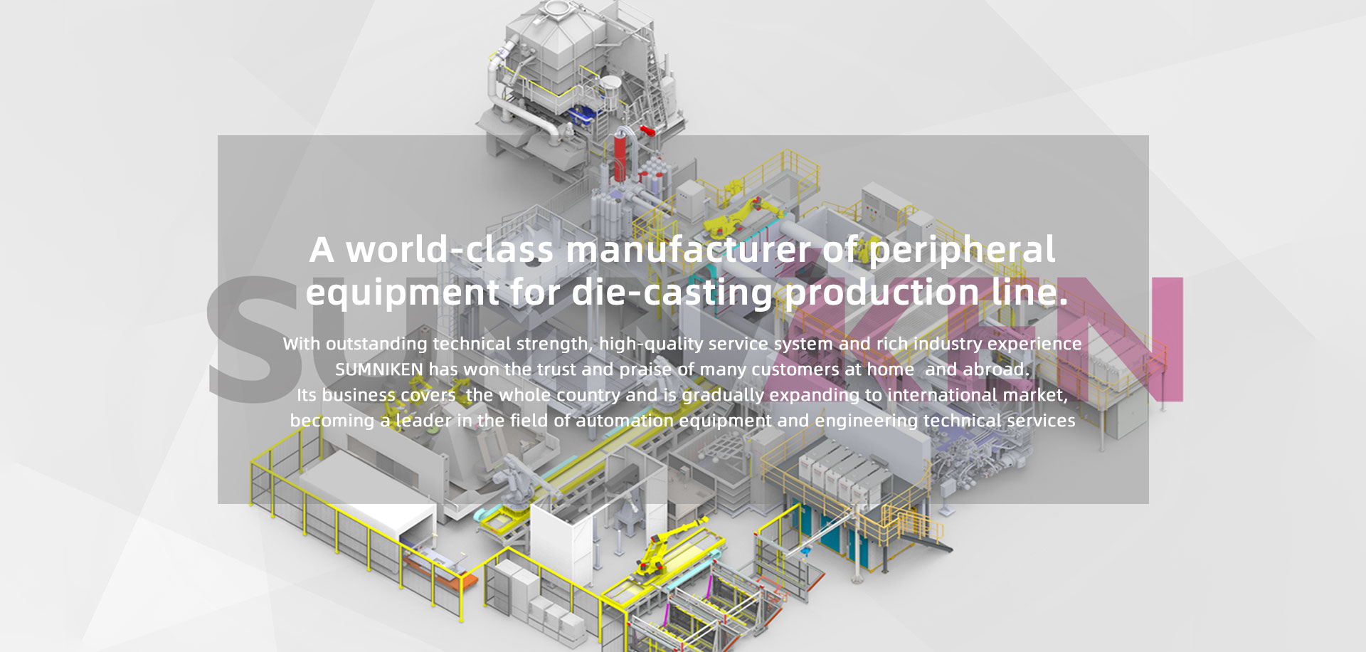 SUMNIKEN's core team consists of experienced engineers who love the foundry industry. They design and plan modern die-casting factories according to customer requirements. SUMNIKEN provides customers with die-casting peripheral equipment and related services, as well as automated solutions (design, integration, commissioning, production, training - turnkey projects).